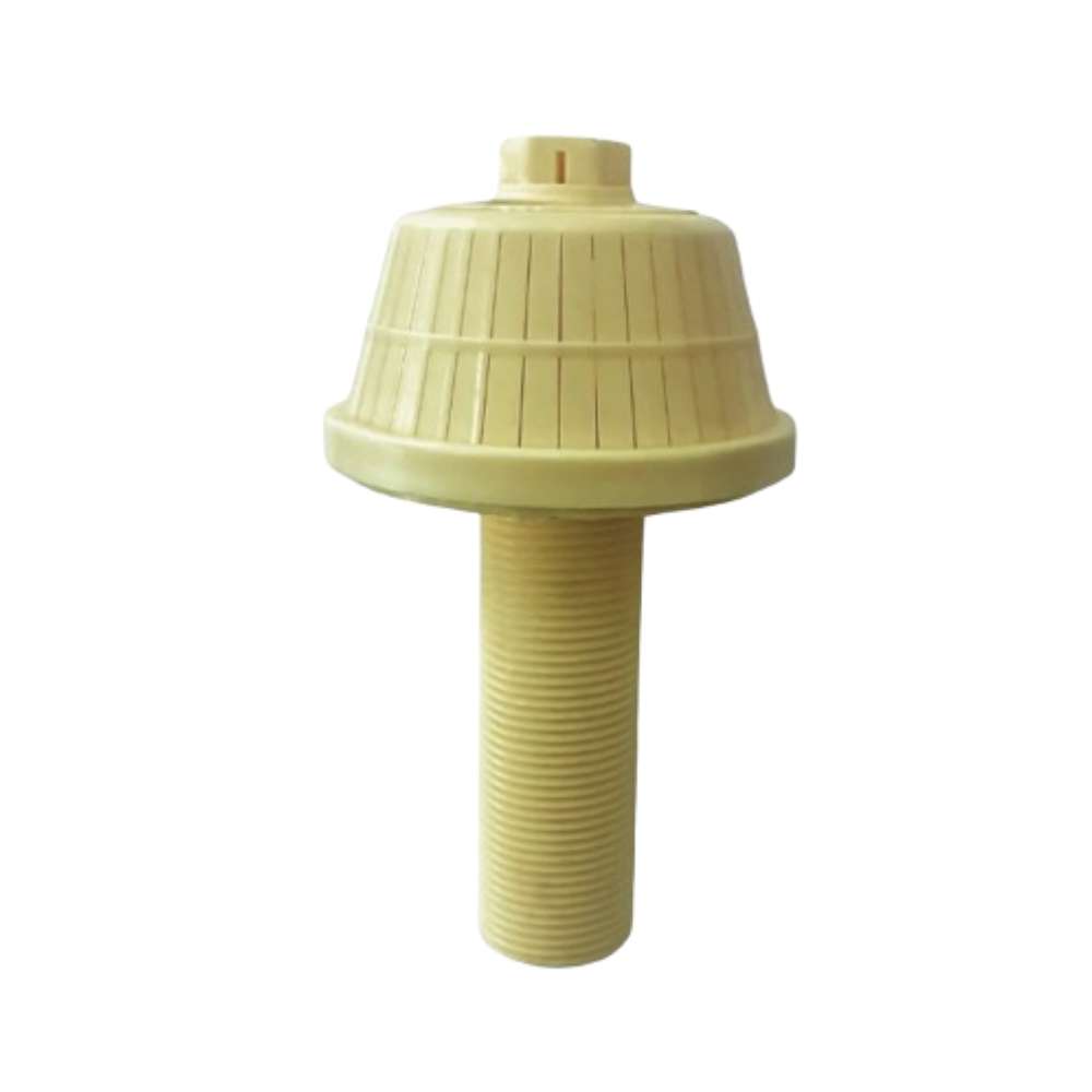 Tobera fabricada en polipropileno (PP), diseñada para sistemas de filtración y distribución de agua. Incorpora conexión de 3/4″ y rosca de ajuste para una instalación segura y eficiente.